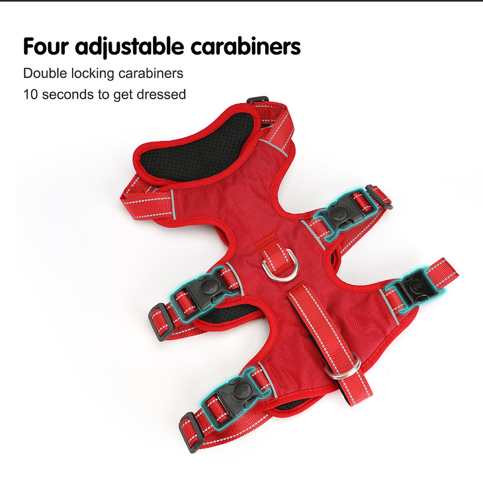 QuadClip UrbanPaw Arnés multifuncional de nailon de alta calidad para perros con cuatro mosquetones ajustables, duradero, fácil de usar