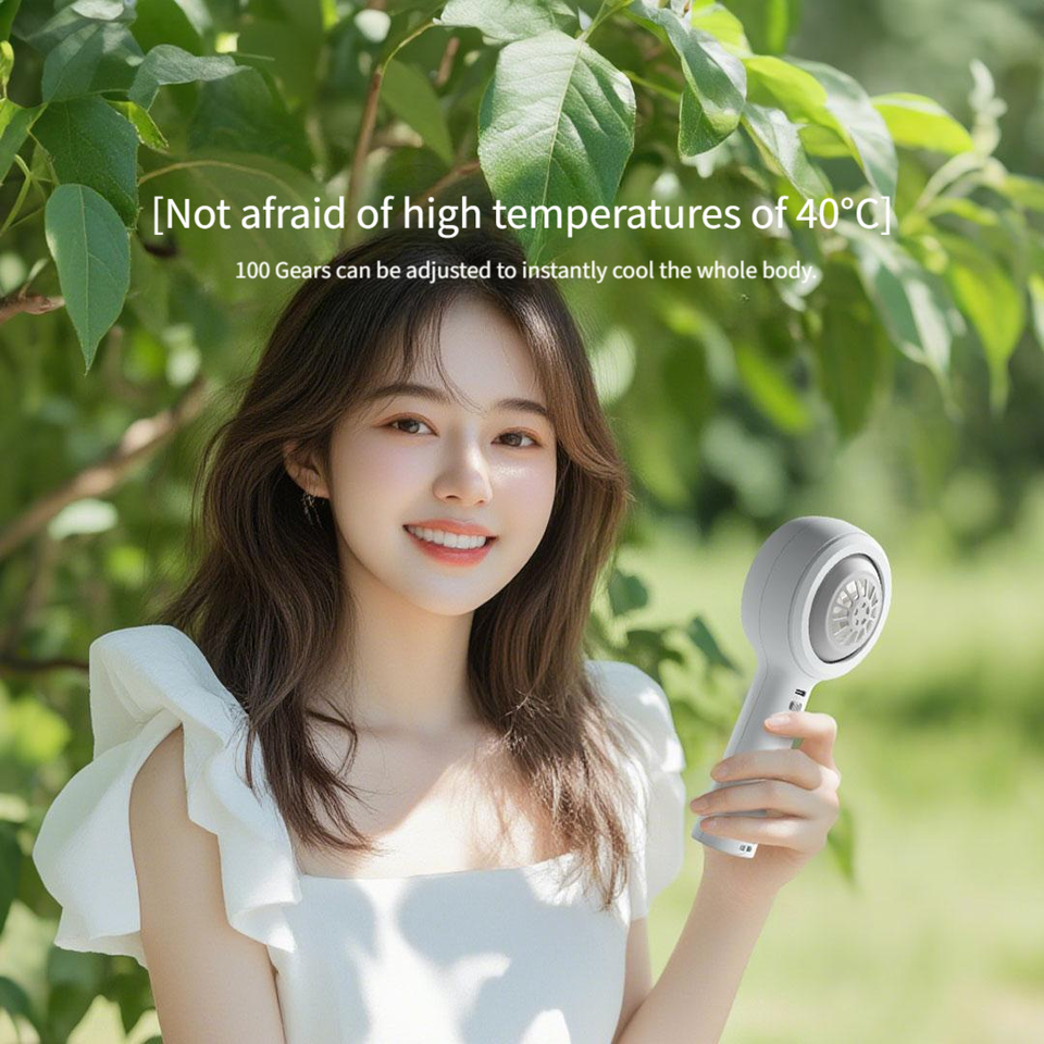 Mini ventilador de mano Qualitell Y3 de viento alto 100-Velocidad del viento 5,3 m/s Ventiladores portátiles 13 horas de duración de la batería con pantalla digital LED