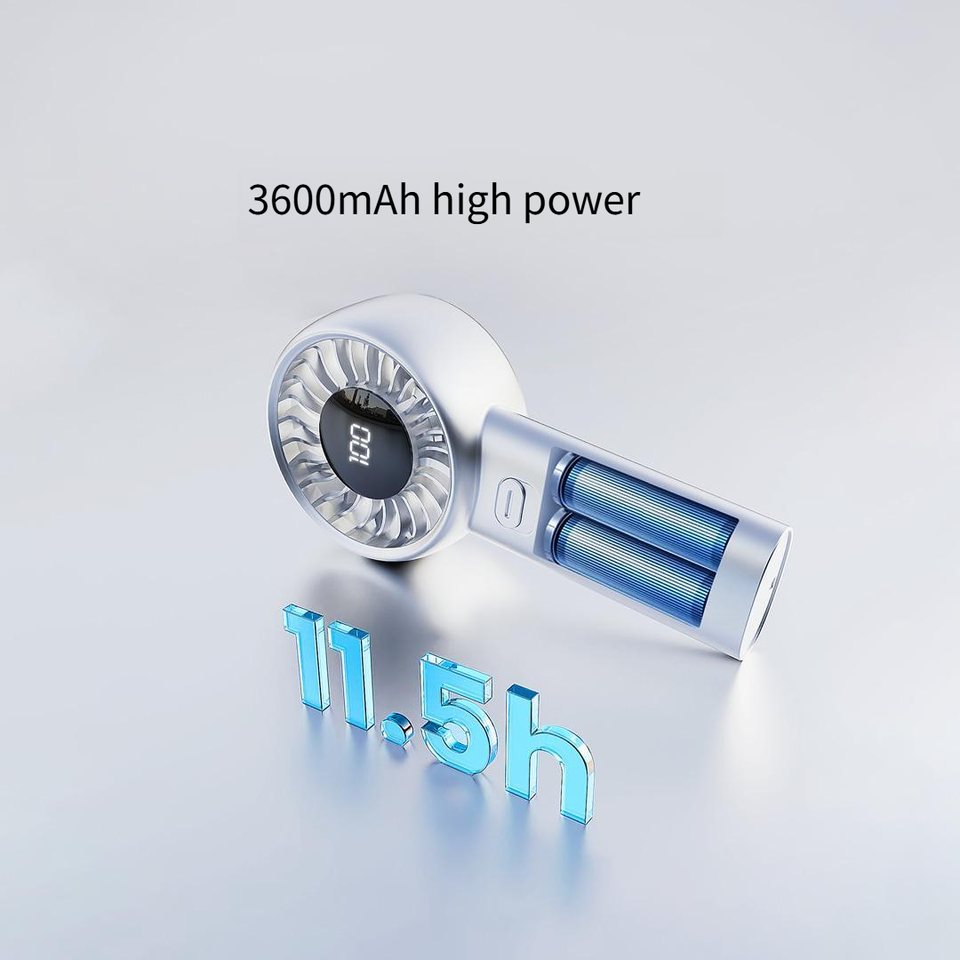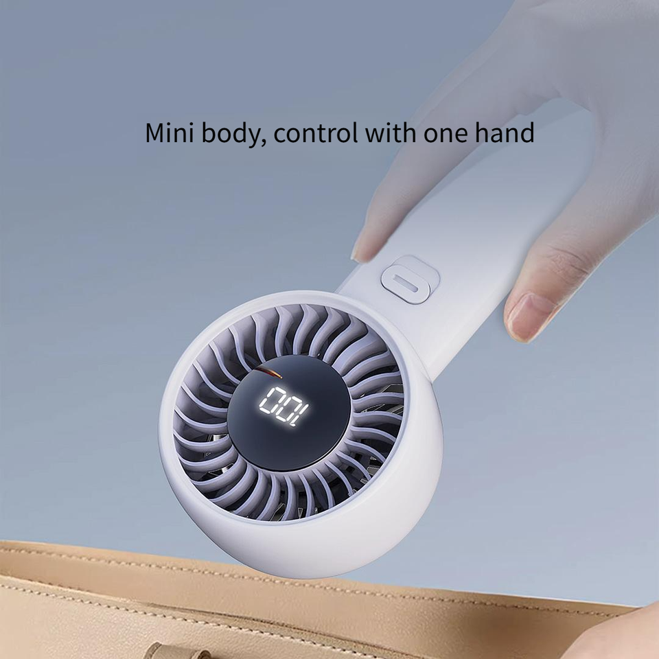 Ventilador de Mano Qualitell Y4, Mini Ventilador Portátil de 5 Velocidades, Tipo-C, Recargable, 11.5 Horas de Duración de la Batería, con Pantalla LED Digital