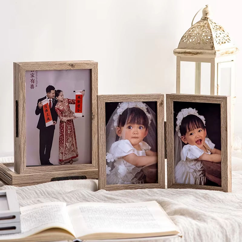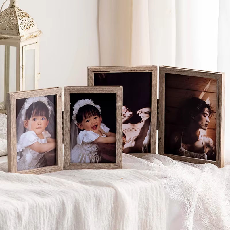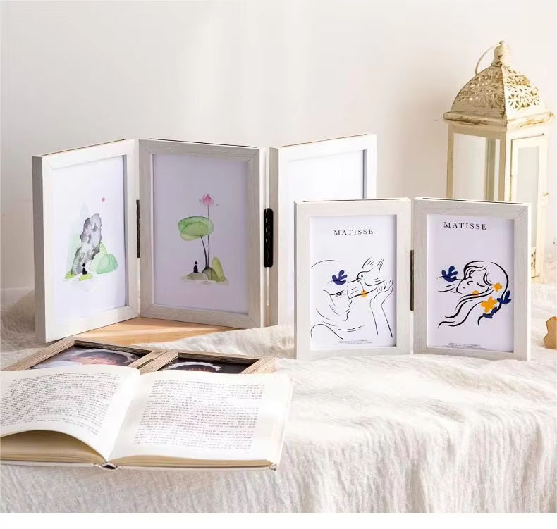 Marco de Fotos Plegable de Madera Maciza Blanca de Doble Cara Transparente de 6 y 7 Pulgadas de Alta Calidad