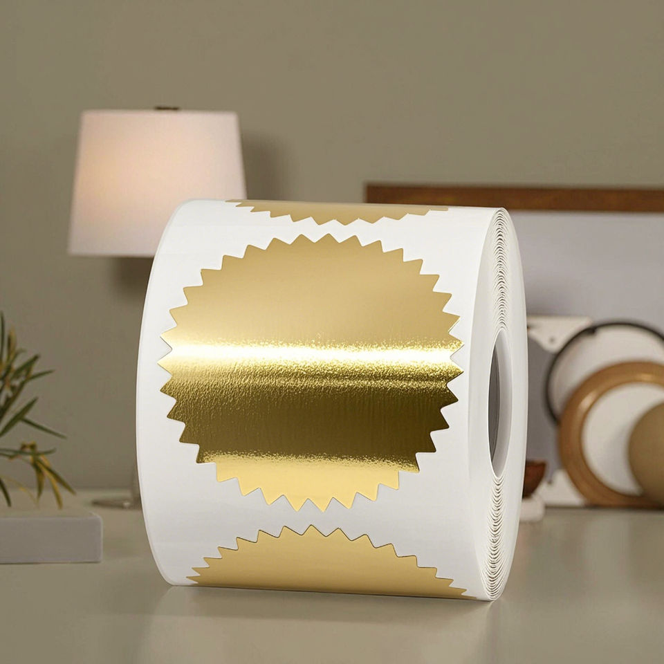 Etiqueta adhesiva de calidad Etiquetas de embalaje de oro sensibles al calor para presentación de productos premium