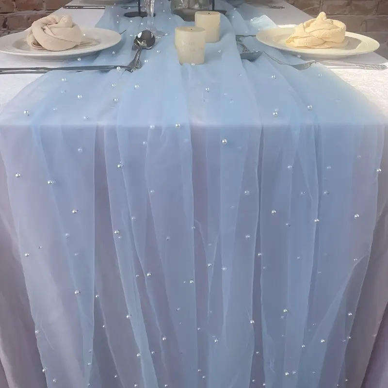 Product Name:Pearl Embellished Mesh Table Runner / Tulle Pearl Runner