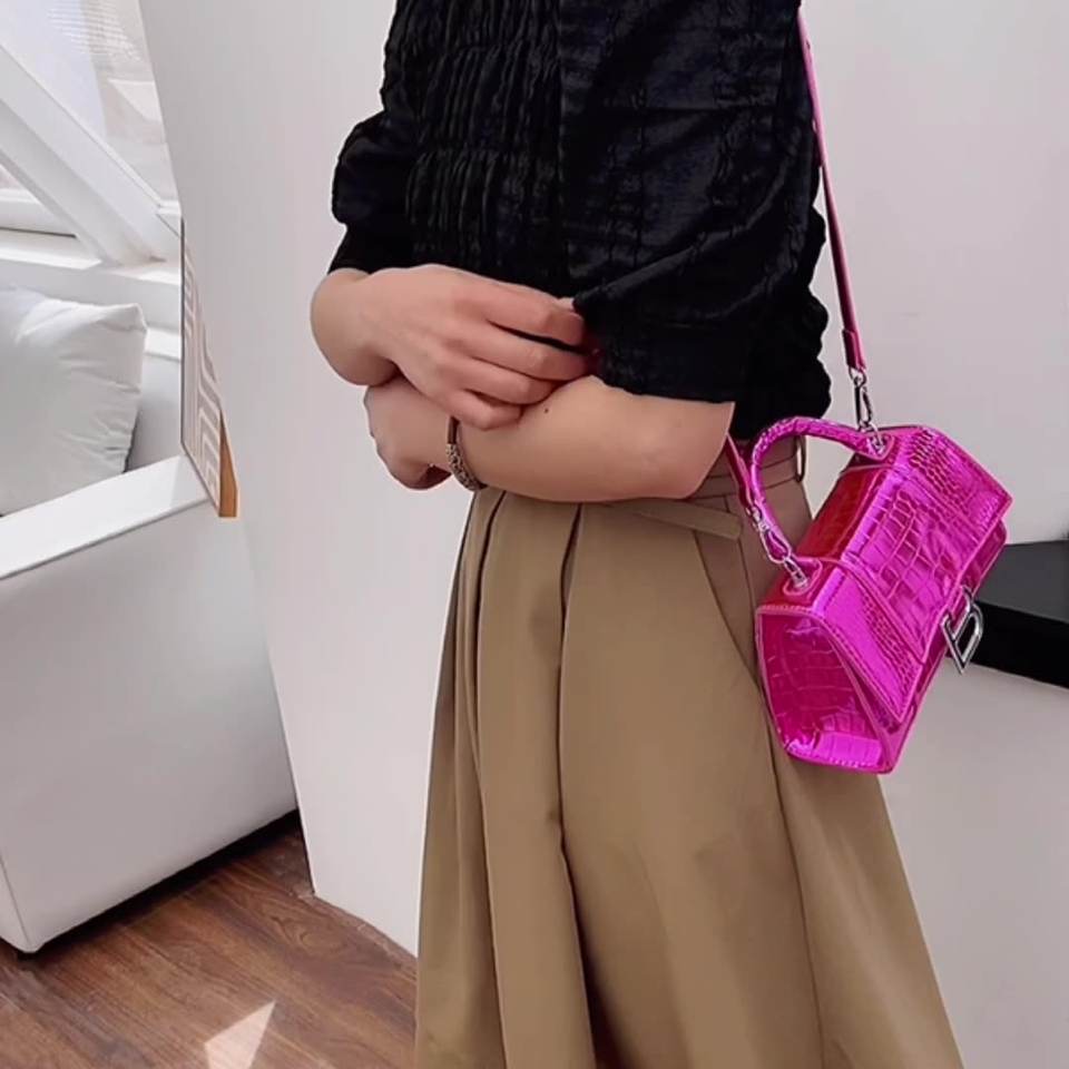 Bolsos de Diseñador de Calidad, Última Moda 2025, Bolso Bandolera, Color Sólido Brillante, Hebilla Brillante, Bolso de Hombro para Compras para Chicas