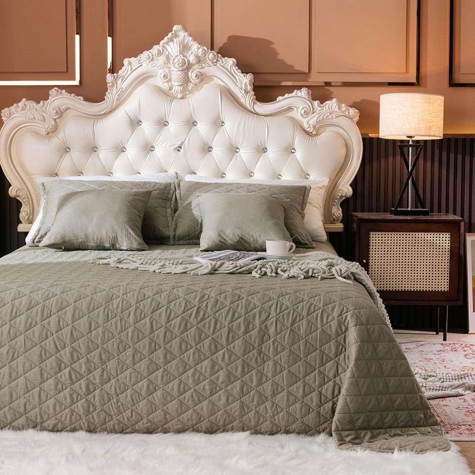 Cotton Quilted Bedsheet Bedspread Set With Quilted Pillowcases