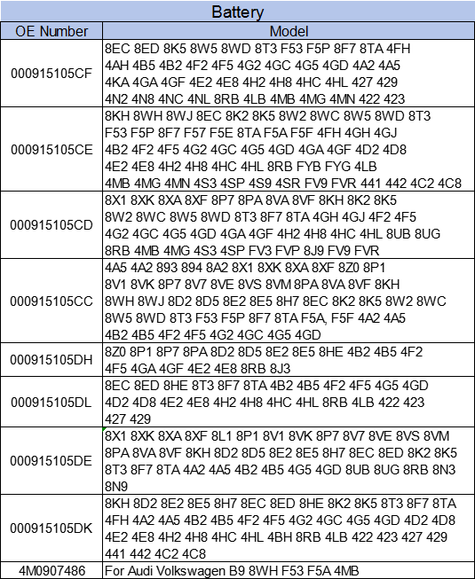 000915105CF, 000915105CE, 000915105CD, 000915105CC, 000915105DH, 000915105DE, 000915105DL, 000915105DK, 4M0907486OE NO.