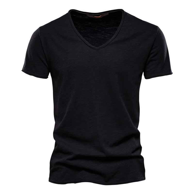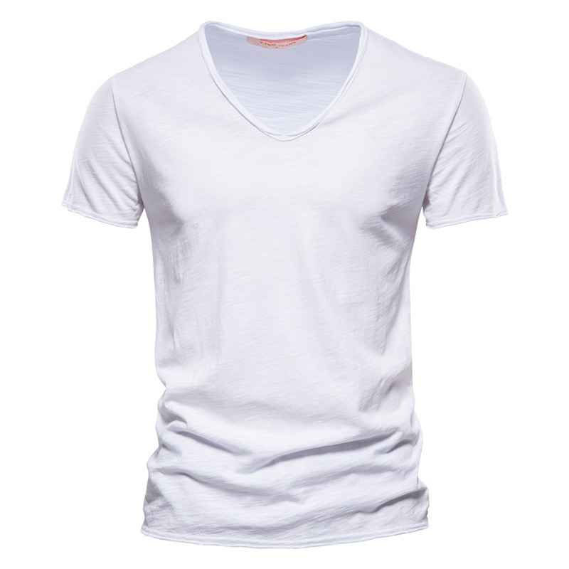 Camiseta de media manga de seda helada sin rastro de verano para hombre de calidad Slim Fit Casual transpirable con cuello en V Top Formal de punto inferior