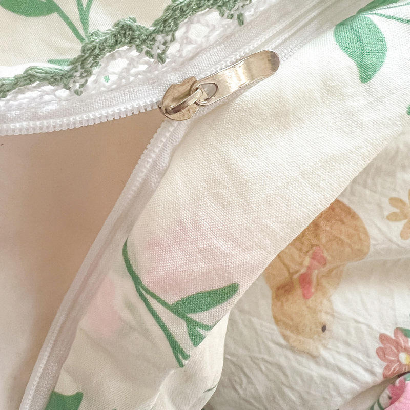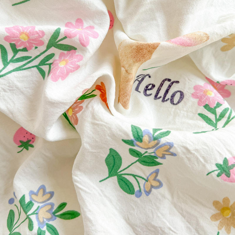 Calidad Simple estilo francés Pastoral encaje pequeño Floral impreso hoja edredón conjunto de cuatro piezas ropa de cama transpirable 4 tamaños-King