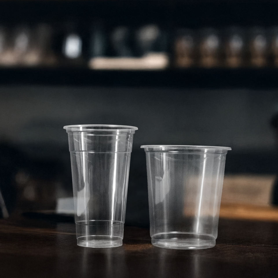 Vasos desechables de plástico transparente Quang Quan, vasos de PP de una sola pared de 95mm, Bebidas frías/calientes de 12/16/20/24Oz para café con leche, té, jugo
