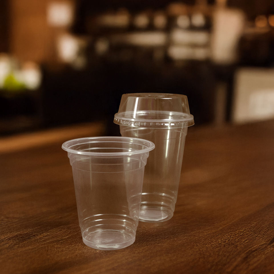 Tapas de vasos de plástico desechables de la fábrica Quang Quan, MOQ bajo, Material PET PP, pared única para café helado, bebidas frías, Direct Viet
