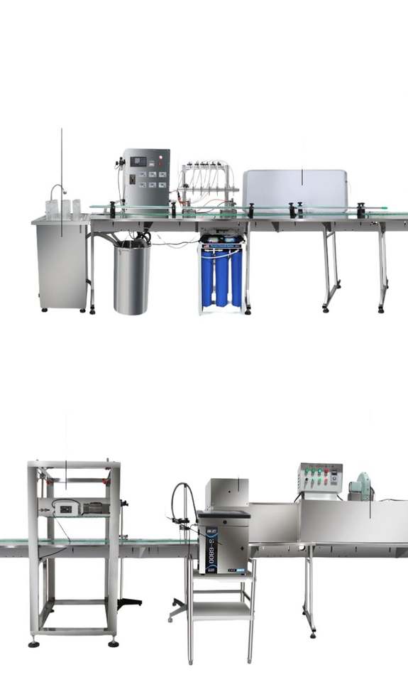 Línea de Producción Automática de Llenado de Agua Mineral en Botellas Pequeñas de Plástico, con 6 Cabezales de Dosificación