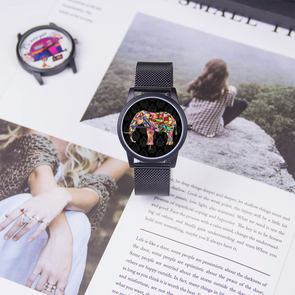 Reloj de pulsera de cuarzo para mujer Ladys Girls diseño de elefante de color prisma moda ocio estilo regalo recuerdo estilo Simple