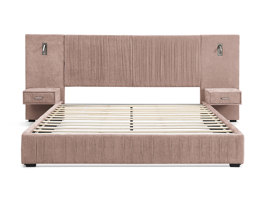 Base de Cama Queen Moderna Convertible Tapizada en Tela Chenille con Cabecero Plisado y Plataforma de Madera Sólida