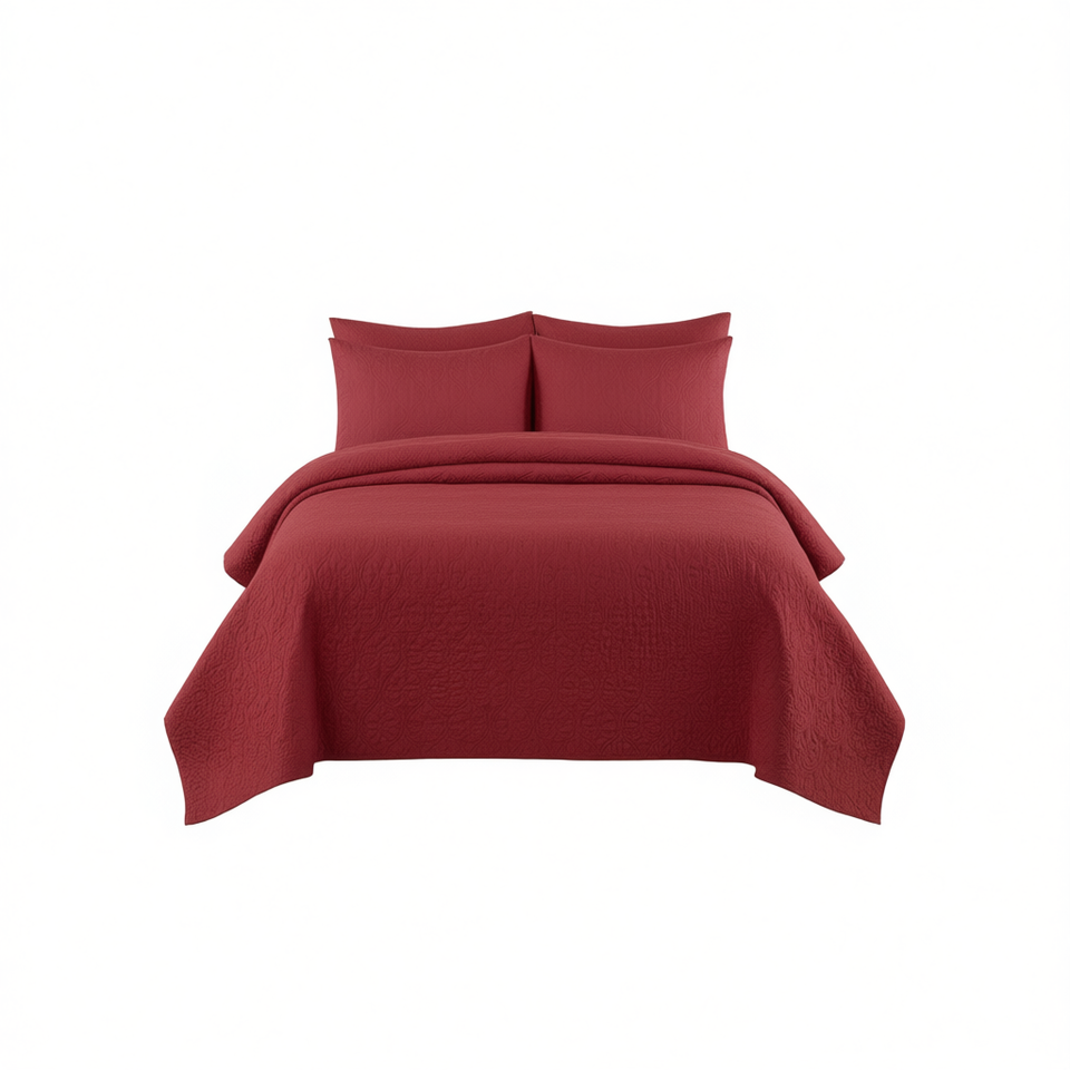 Juego de Cubrecama Reversible Queen, Cubrecama de Algodón Rojo, Elegante Diseño Sólido Cosido