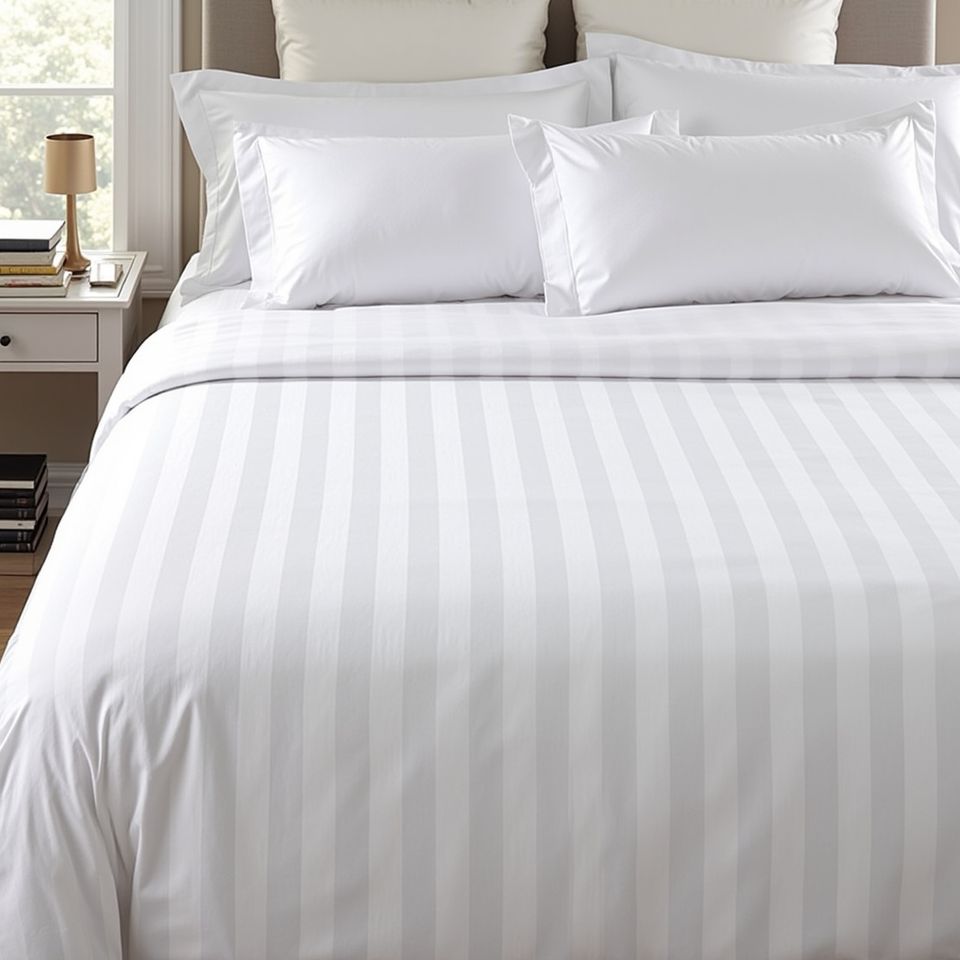 Queen Size 3cm Satin Stripe Polycotton Funda nórdica Suave y duradera 240X230 Cm