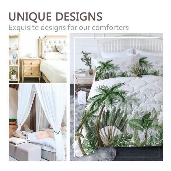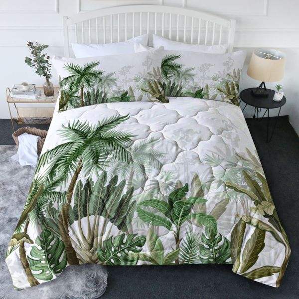 Juego de Edredón Queen Size con Diseño de Palmeras, 3 Piezas, Ropa de Cama con Alternativa de Plumón para el Hogar y el Dormitorio
