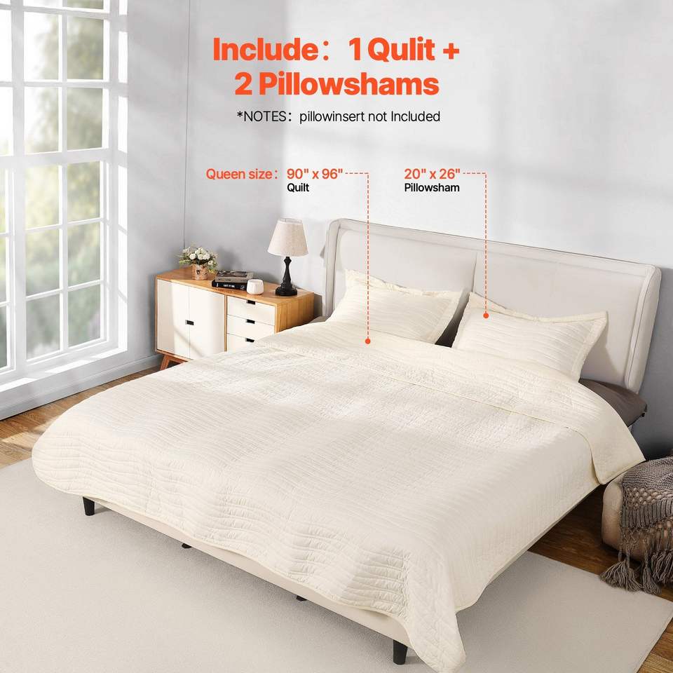 Juego de Edredón de Microfibra Tamaño Queen, 3 Piezas, Ligero, 1 Edredón y 2 Fundas de Almohada en Color Beige