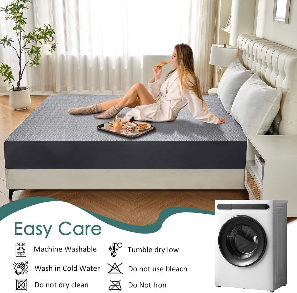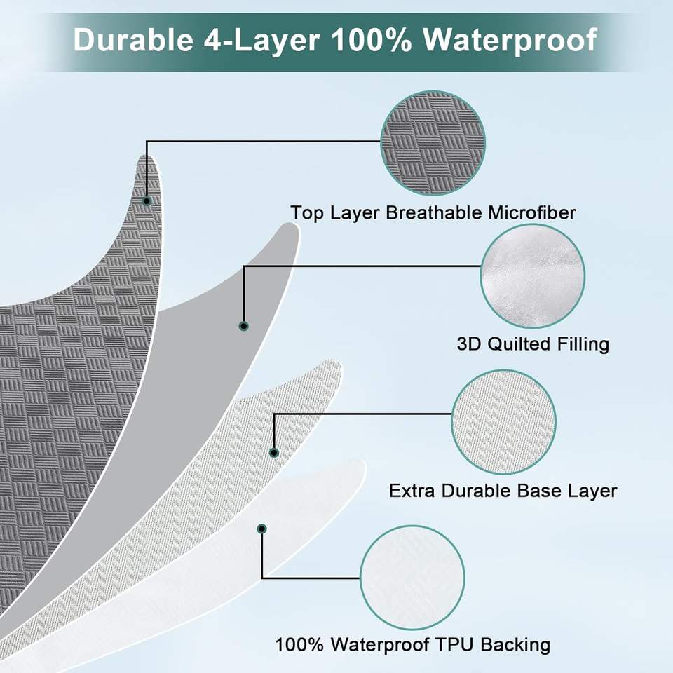 Cubrecama Impermeable y Transpirable de Microfibra Tamaño Queen, Bolsillos Profundos, Antideslizante, Silencioso, Lavable a Máquina, Gris (60x80)