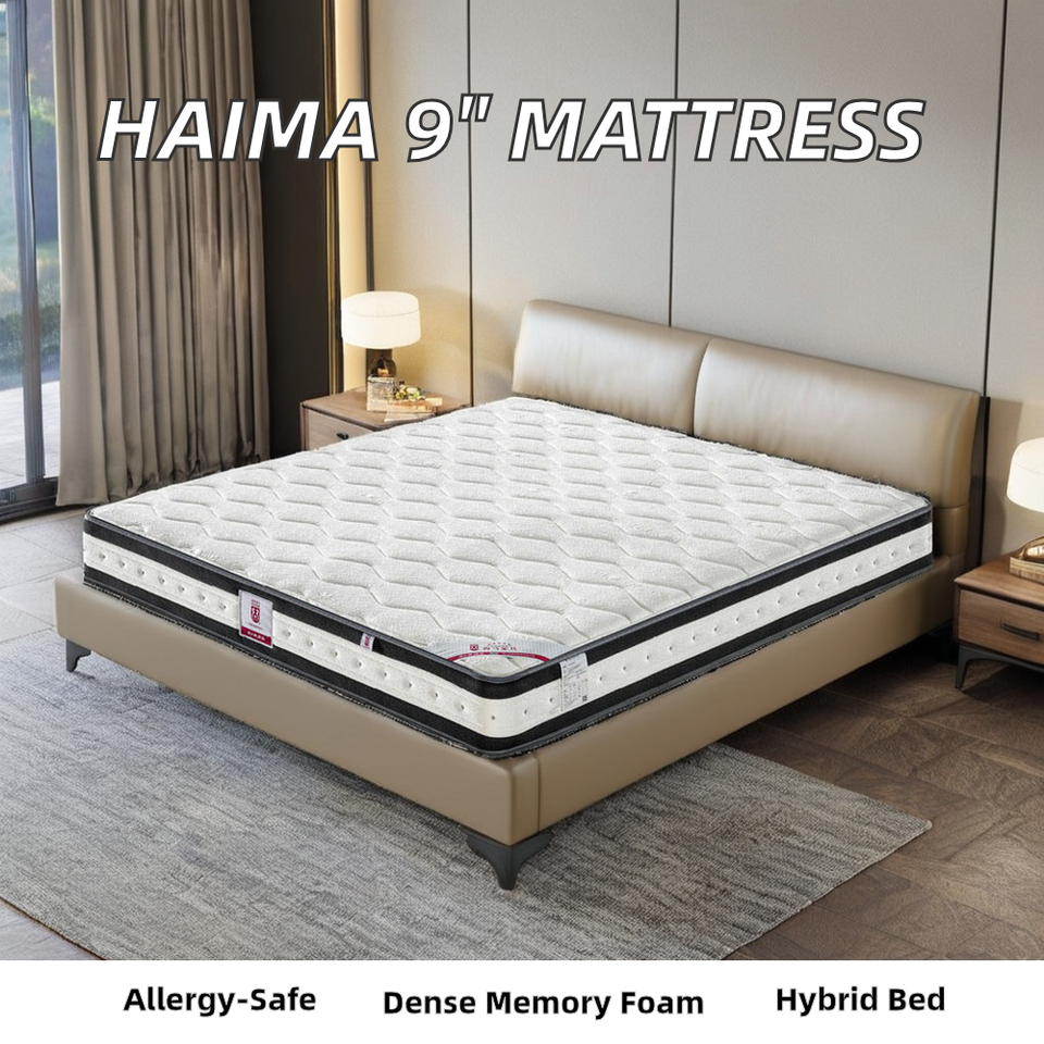 Colchón Híbrido de Espuma Viscoelástica de Alta Densidad Queendom de 9 Pulgadas, Diseño Moderno con Látex, Gel y Resortes Ensacados, para Uso en Hoteles y Hospitales