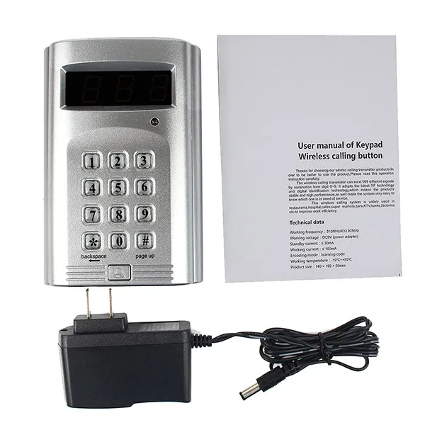 Sistema de llamadas inalámbricas de cola, receptor de pantalla de número grande, host + 999, llamador de teclado para restaurante, cafetería, servicio de llamada