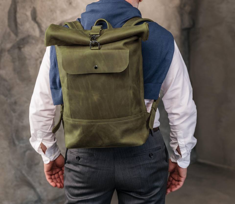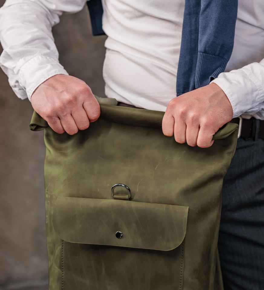 Palabras clave:Mochila de Cuero Genuino con Cierre Enrollable