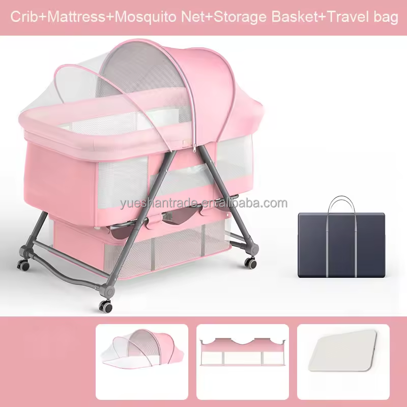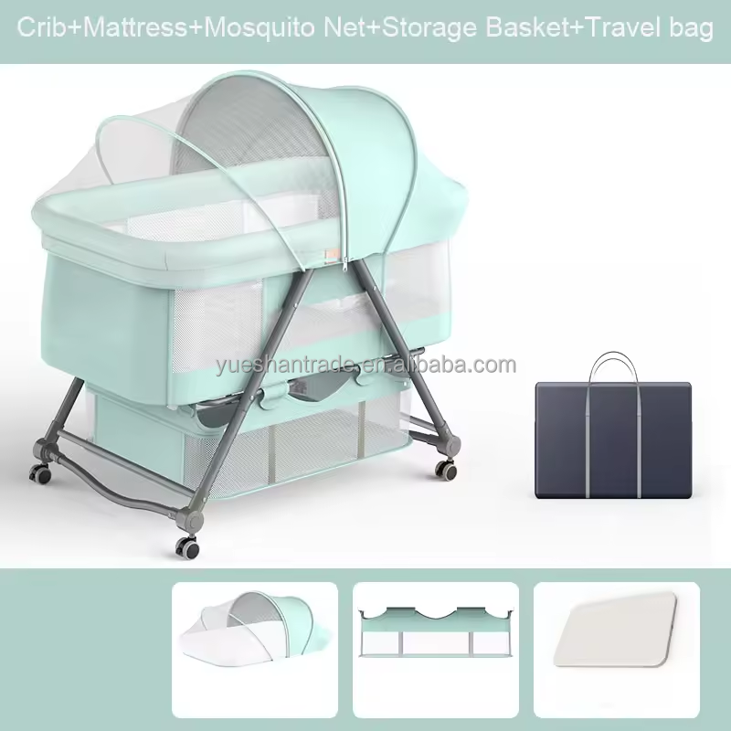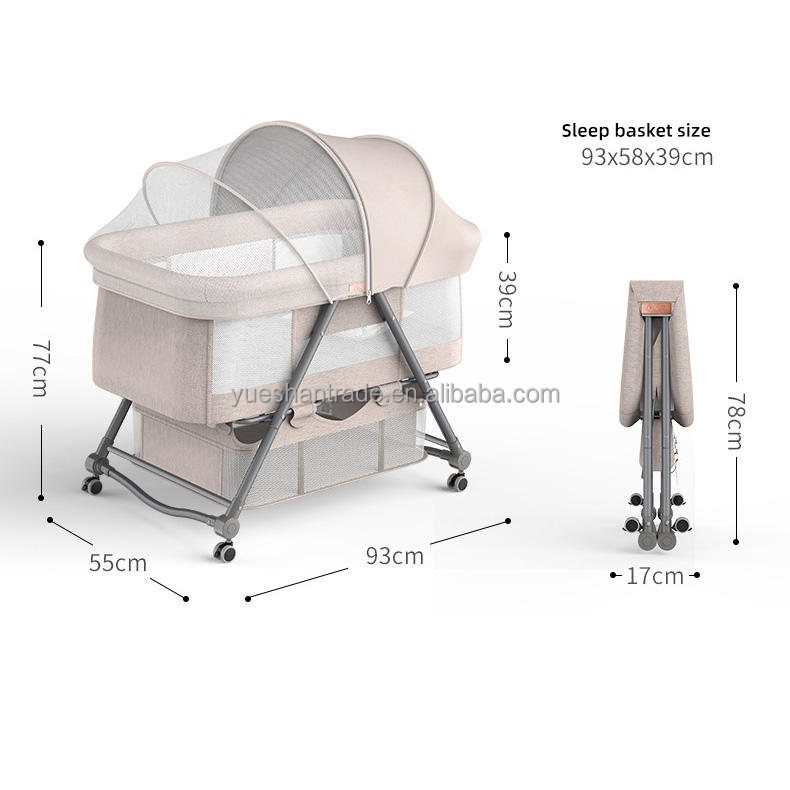 Cuna Portátil de Lino y Metal de Montaje Rápido para Bebés, Cesta de Almacenamiento Segura para Dormir Junto a la Cama, Marca OEM Modelo 001