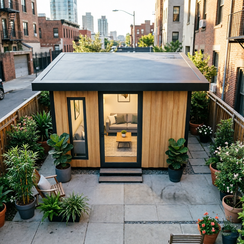 Casa de Huéspedes Prefabricada de Montaje Rápido para Jardín o Patio Trasero, Cabaña para Recepción Diaria o Espacio de Ocio Privado