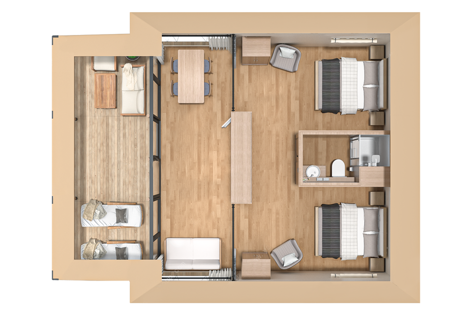 Carpa Safari de Lona Cómoda con Estructura de Madera Sólida de Construcción Rápida y Terraza para Complejos Turísticos