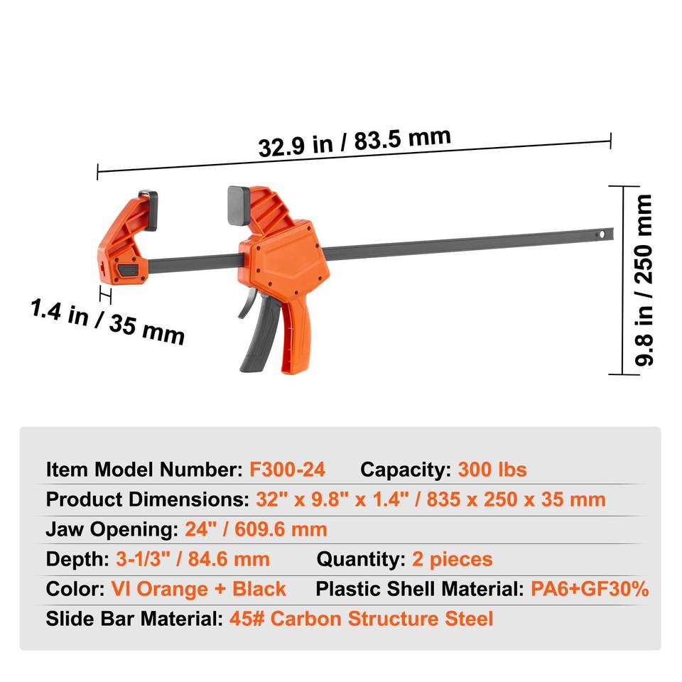 Juego de 2 Abrazaderas en F de Cambio Rápido de 24 Pulgadas, Abrazaderas de Barra para Trabajar la Madera con una Sola Mano, Alta Resistencia, Límite de Carga de 300 Libras