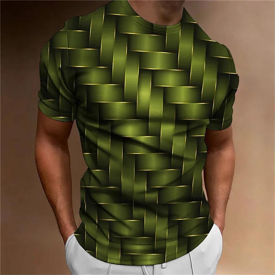 Secado rápido 100% patrón impreso 2025 camiseta simple para hombres patrón geométrico 3D impreso hombres Top diario Casual
