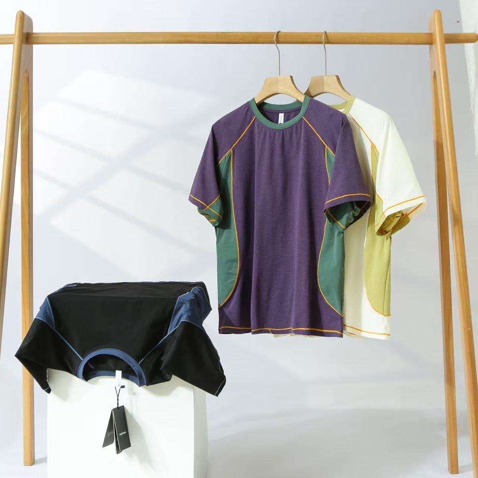Camiseta de Satén de Manga Corta con Bloques de Color de Secado Rápido, Unisex, Corte Regular, Ropa Casual para Actividades al Aire Libre, Primavera/Verano, Etiquetas de Marca