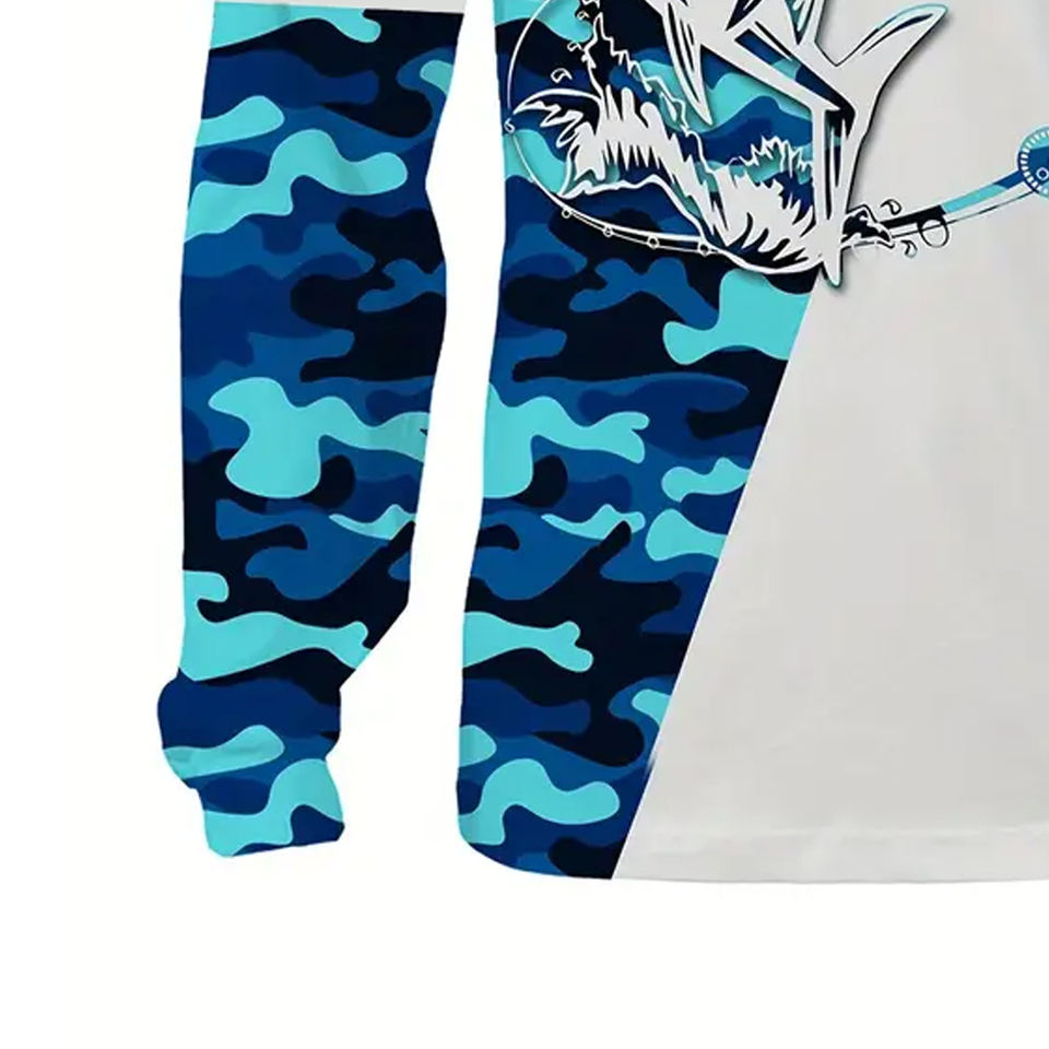 Camisa de pesca al por mayor de rendimiento de poliéster personalizado de sublimación de protección de manga larga de secado rápido para hombres