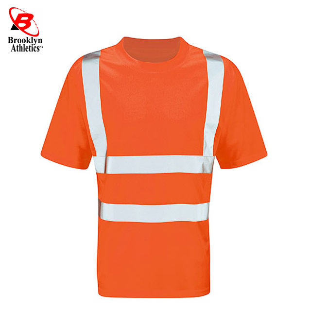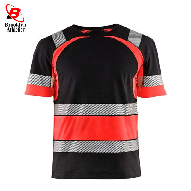 Camisetas de seguridad de secado rápido con alta visibilidad Material de poliéster de algodón impermeable Tiras reflectantes Bolsillo Logotipo personalizable