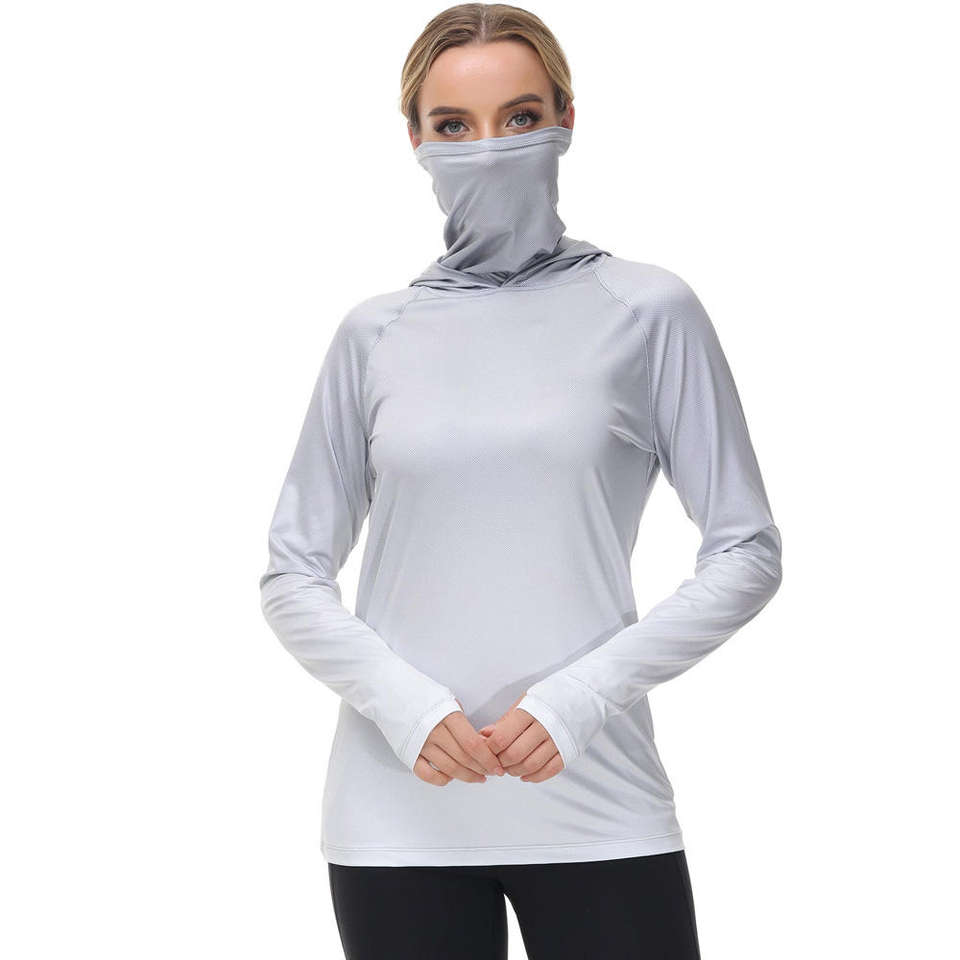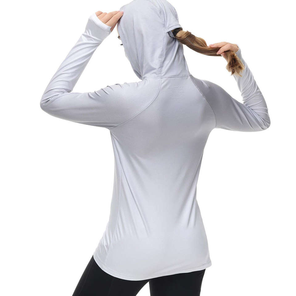Sudaderas con capucha de pesca ajustadas de sublimación de secado rápido para mujer, sudaderas con capucha de pesca de nuevo diseño, protección solar personalizable