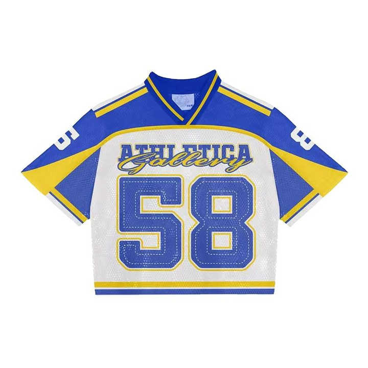Camiseta de fútbol de entrenamiento con cuello en V de secado rápido, camiseta Retro de estilo universitario, camiseta de rugby recortada de malla, ropa deportiva de fútbol americano