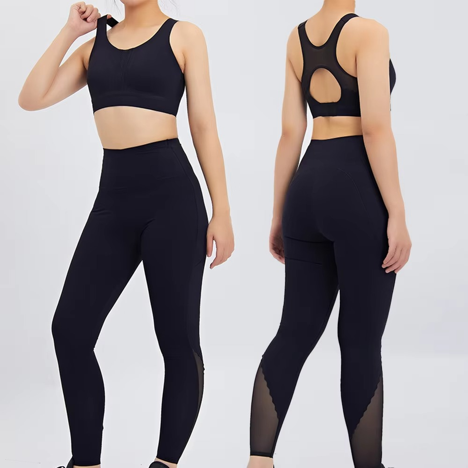 De secado rápido al por mayor de cintura alta Gimnasio Deportes Leggings Tight Fitness Seamless Yoga Wear Leggings 2PCs Yoga Set para las mujeres