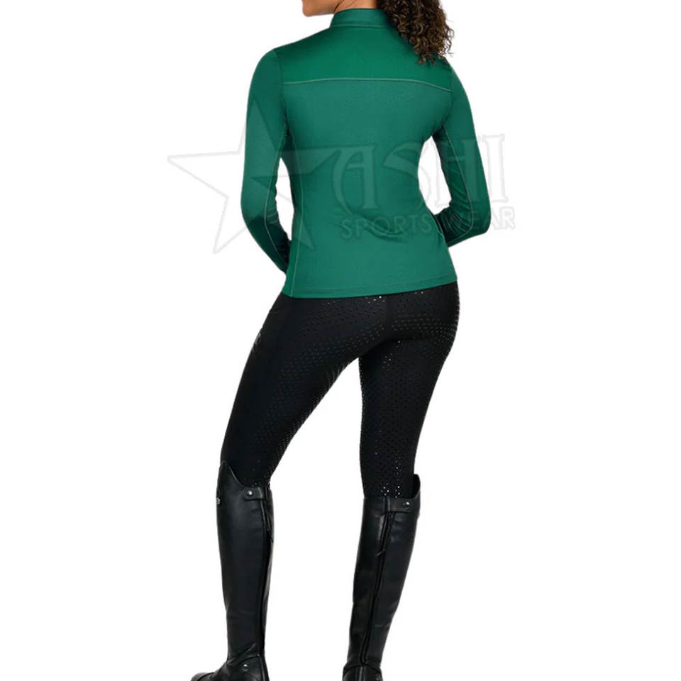 Camisa de manga larga con cremallera 1/4 de capa base de equitación para mujer de alta calidad, camisas ecuestres de secado rápido