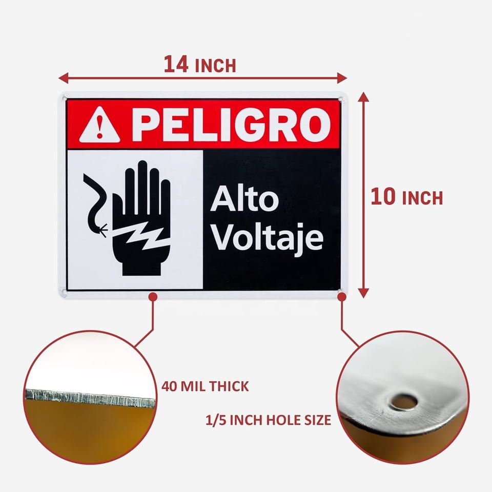 Instalación rápida de aluminio 'Peligro Alto Voltaje' Señal DE SEGURIDAD Español 'Peligro Alto Voltaje' Señal de advertencia Luz de pie reflectante