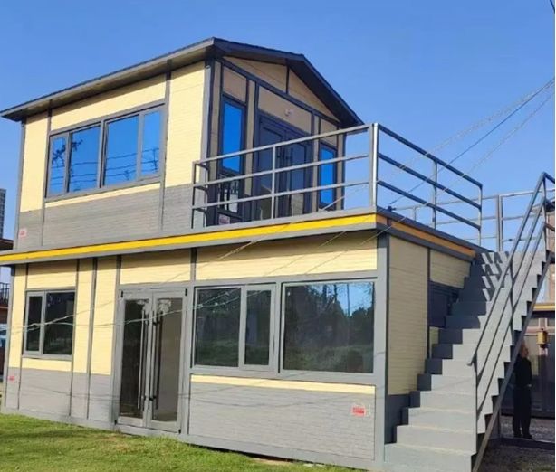 Casa contenedor de dos plantas de Instalación rápida para hoteles y villas con terraza de escaleras incorporada o externa opcional