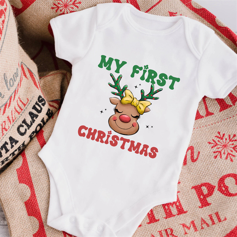 Envío rápido personalizado mi primera Navidad ropa de bebé mameluco 100% algodón manga corta bebé recién nacido mono al por mayor