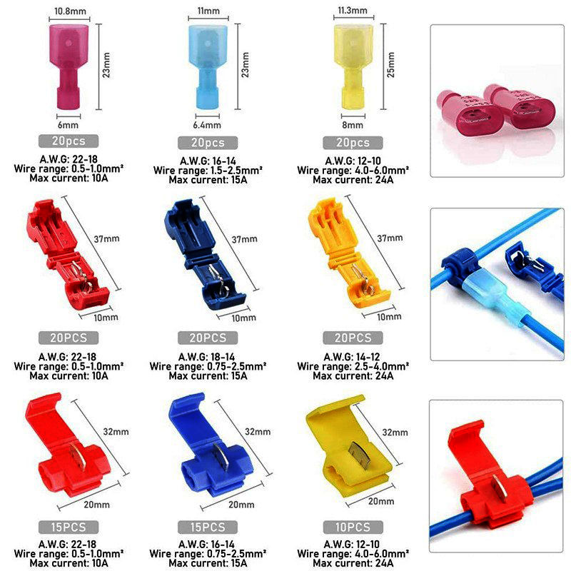 Conector de Empalme Rápido Serie T-Tap, Terminal Eléctrico de Conexión Rápida, Conector de Cable de Empalme Rápido Scotch Lock, Kit de 160 Piezas