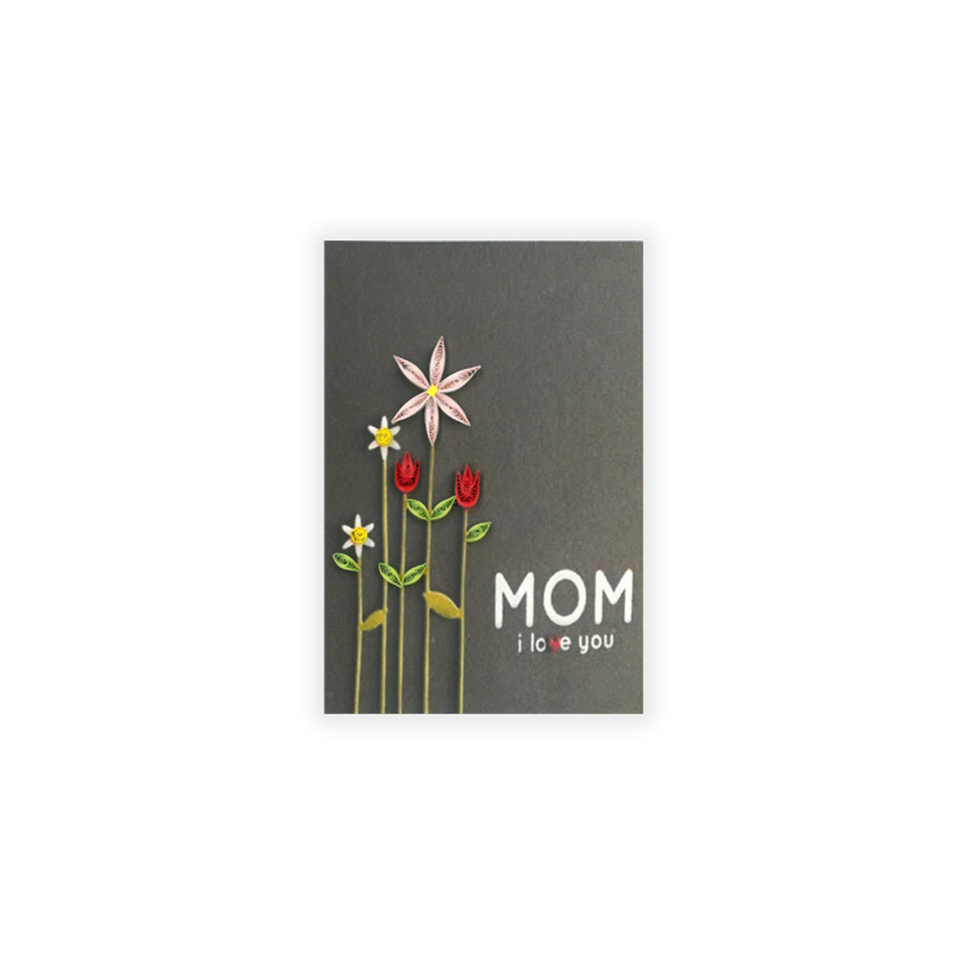 Nombre del Producto:Tarjeta de Quilling "Amo a Mamá" - Flor para el Día de la Madre