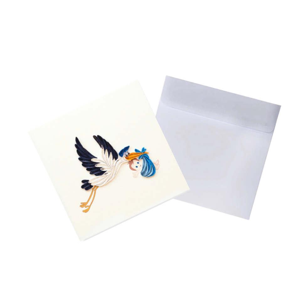 Style:Quilling Card, Baby Style. Stork Carrying Baby Boy