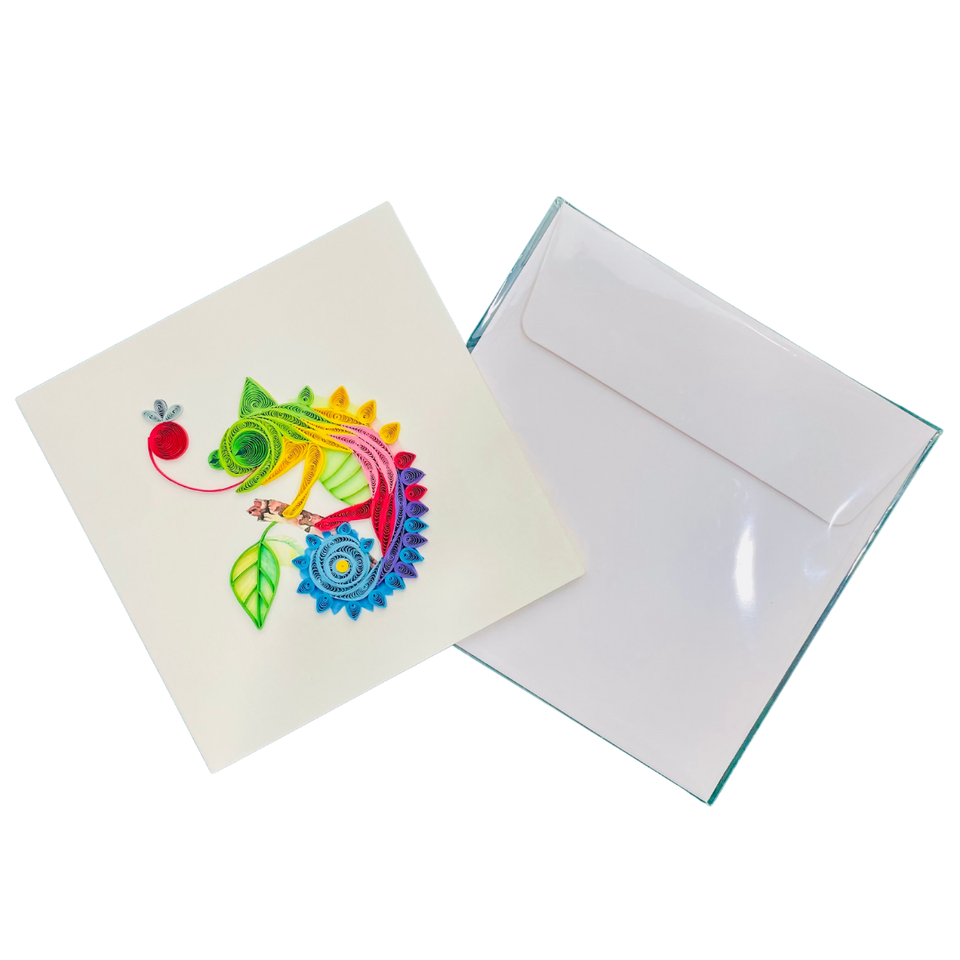 Nombre del Producto:Tarjeta Quilling Camaleón Tropical Colorido en la Naturaleza