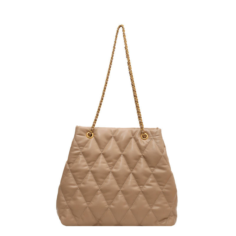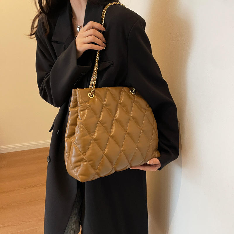Quilted Chain Shoulder Bag Coffee Color Magnetic Buckle Everyday Use Fall 2023 Fashion Women's Horizontal Square Style