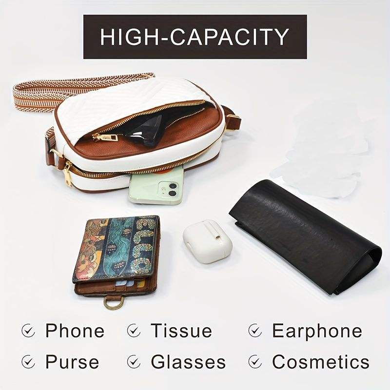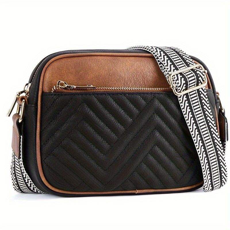Bolso de hombro Retro a juego con rejilla bordada acolchada, bolso de mensajero con correa para el hombro y cremallera, bolso cuadrado pequeño
