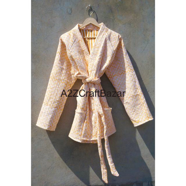 Chaqueta de Mujer Acolchada de Algodón de Punto Reversible, Ecológica, Transpirable, de Secado Rápido, con Cierre de Cinturón Vintage, Estampado Floral a Rayas
