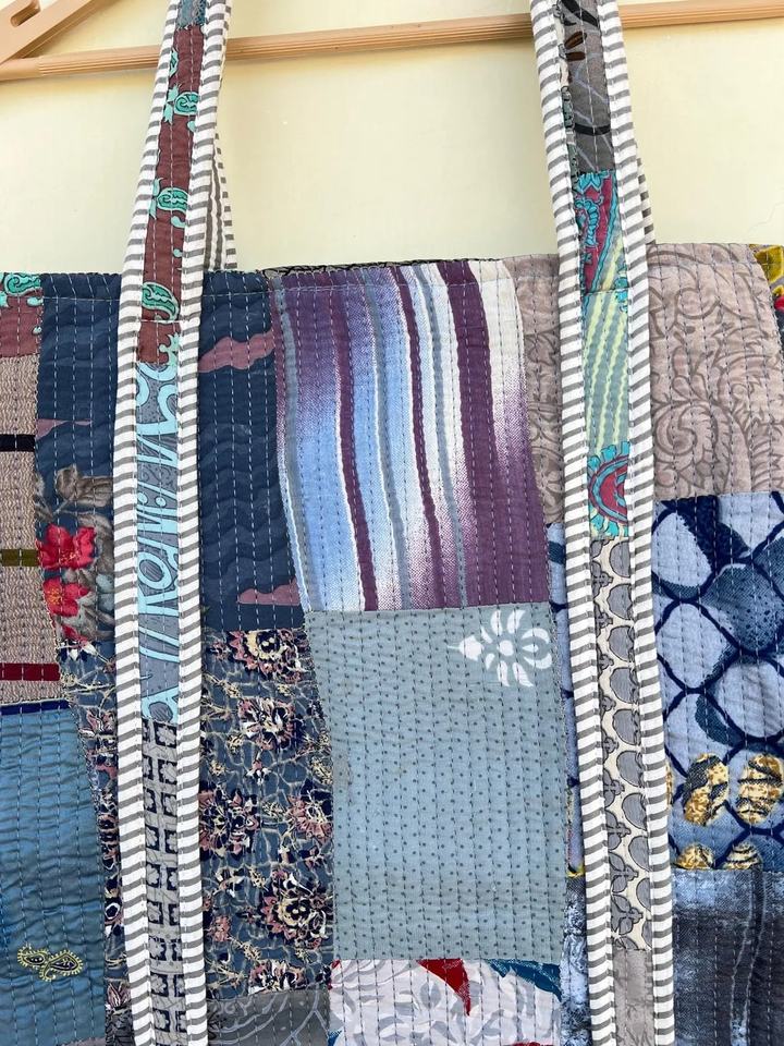 Acolchado Patchwork Tote Hombro Patch Bag Algodón Handprint Floral Eco Friendly Bolsa sostenible