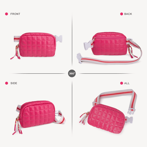 Bolso pequeño acolchado tipo puffer con correa ajustable, riñonera rosa para mujer, para correr, viajar, hacer senderismo, hacer ejercicio y practicar deportes.