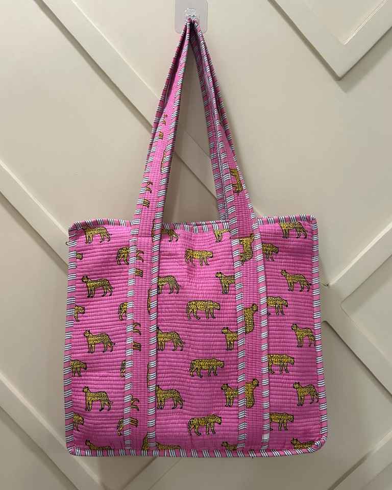 Bolso de hombro de mujer con estampado Floral de algodón acolchado, bolso de compras de viaje y mercado con cierre abierto hecho a mano para verano y otoño