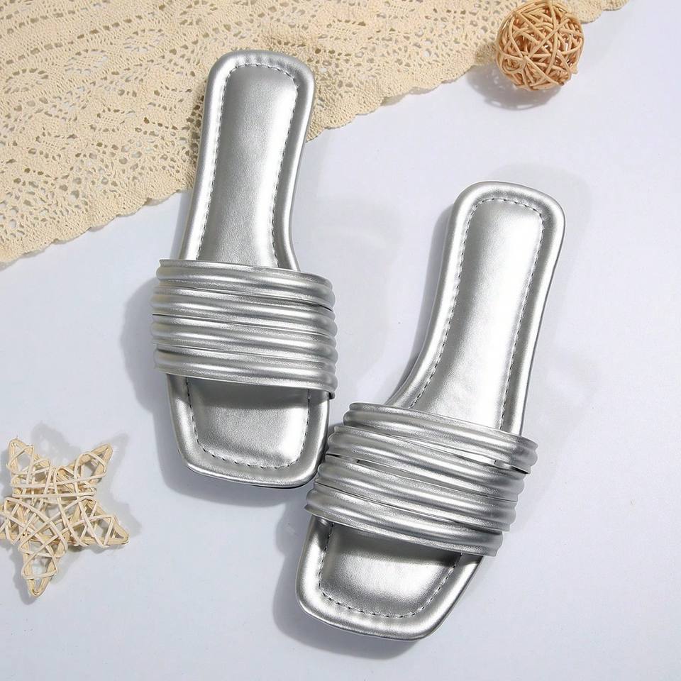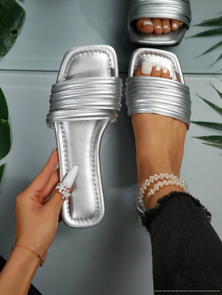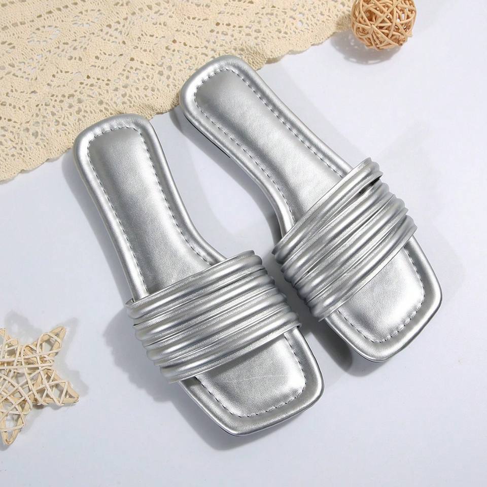 QuiteS 2026, sandalias de lentejuelas con punta abierta para mujer, Sandalias planas de oficina informales de alta calidad, nueva tendencia de moda de verano de talla grande